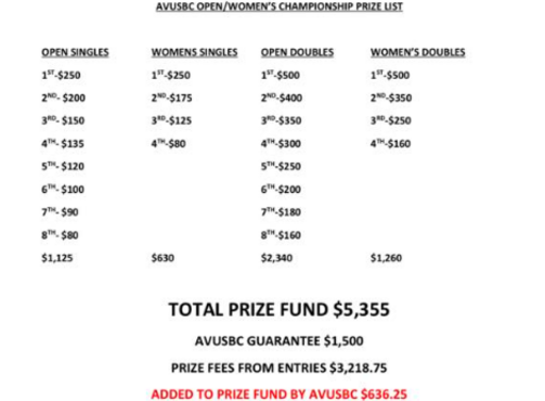 19th Annual Open/Women's Singles and Doubles at Idle Hours South.